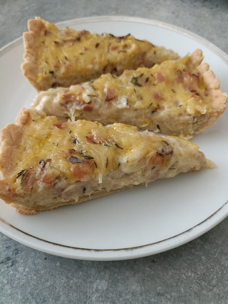 Mně osobně chutná víc, když je cibule opravdu tenká a rozetřená po celé ploše, jinak je koláč místy „suchý“. S anglickou slaninou za mě nejlepší kombinace.
