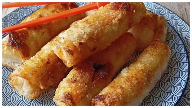 Tohle je přesně typ večeře, co když uděláte víc, tak zmizí během chvilky. Mně se nejlépe osvědčilo závitky nechat po smažení chvilku na roštu, aby zůstaly opravdu křupavé.