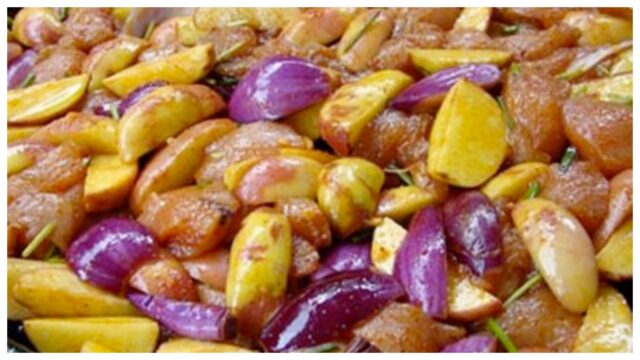 Připravte si lahodný a jednoduchý kastrol plný chutí, který zasytí celou rodinu. Tento recept kombinuje krásu pečených brambor, kuřecích prsou a cibule, vše ochucené a pečené do zlatova na jednom plechu.