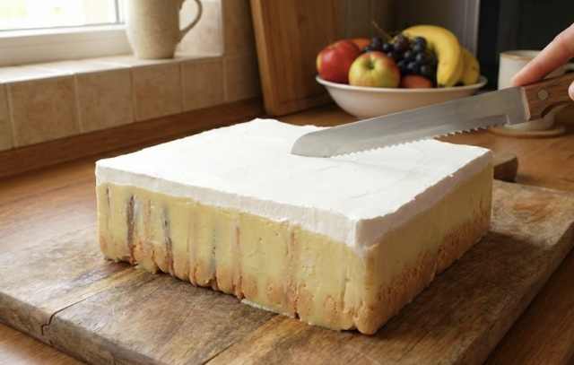 Nepečený sušenkový dezert se smetanou a vanilkovým krémem: