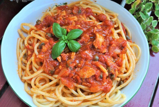 5. Po uvaření těstovin je přidáme do rajčatové omáčky, dobře promícháme, přidáme nasekanou petržel, pokud používáte, a necháme 5 minut povařit, aby se všechny chutě spojily.