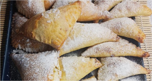 Tip: „Pokud děláte sladkou verzi, můžete do těsta přidat i trochu nastrouhané citronové kůry. Po upečení šátečky ještě horké obalte v moučkovém cukru s vanilkou. Pokud volíte slanou variantu s nivou, posypejte šátečky před pečením kmínem nebo hrubozrnnou solí.“