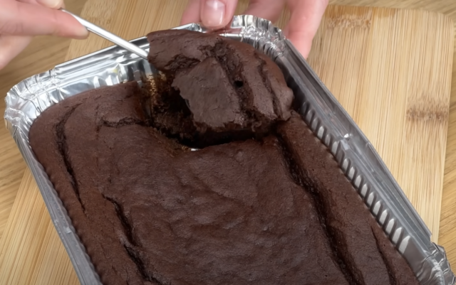 Upřímně, čekal jsem méně „kakaovou“ chuť, ale po upečení je to fakt čokoládovější, než to vypadá. Jen pozor, ať forma není moc velká, jinak to uteče do nížší výšky.
