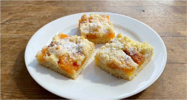 Tip: „Pokud spěcháte a nemáte čas nechat těsto 2 hodiny v lednici, můžete ho hned po vypracování prsty ‚rozmačkat‘ přímo na plech. Bude se lepit na váleček, ale pod prsty povolí. Meruňky doporučuji pokládat řeznou stranou nahoru, aby tvaroh mohl částečně zatéct do důlků po peckách – koláč pak bude ještě šťavnatější!“