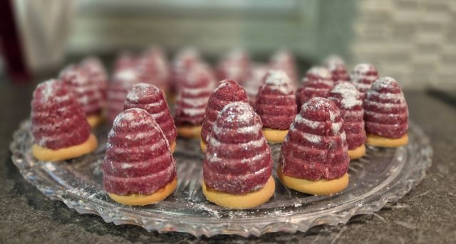 Díky lyofilizovaným malinám má hmota přirozeně výraznou barvu i chuť, která se skvěle doplňuje s jemnou sladkostí jahodového džemu. Výsledkem jsou vosí hnízda, která nejen nádherně vypadají, ale také překvapí lehce nakyslou, osvěžující chutí. Jsou ideální pro ty, kteří mají rádi klasiku, ale nebojí se nových kombinací.