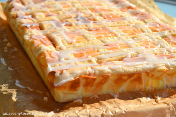 Koláč s vanilkovým krémem a bílou polevou: