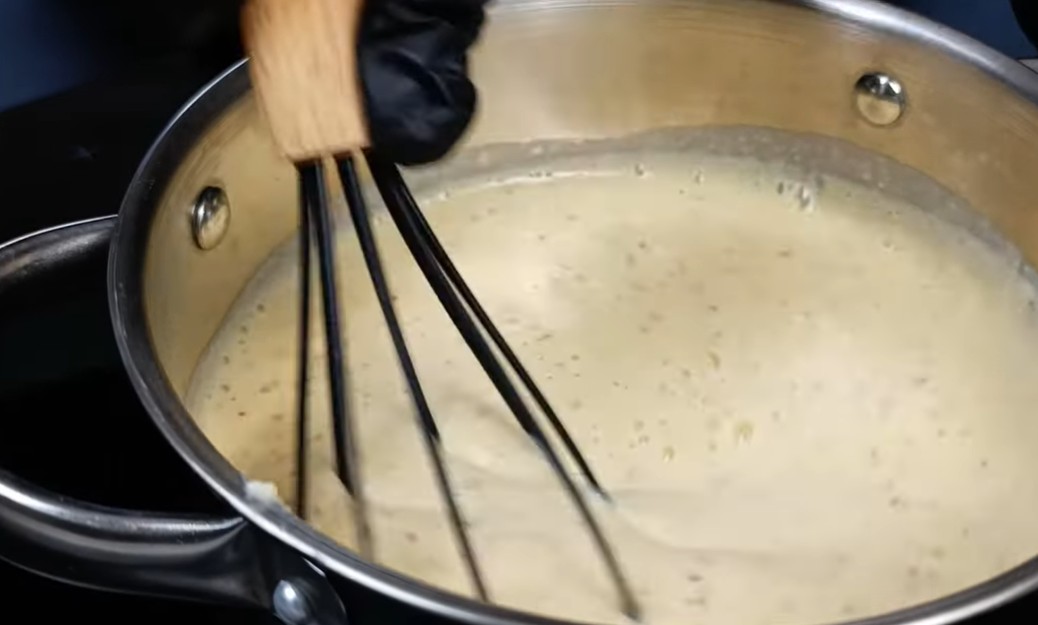 2) Směs povaříme na mírném plamenu. Stále mícháme do zhoustnutí.