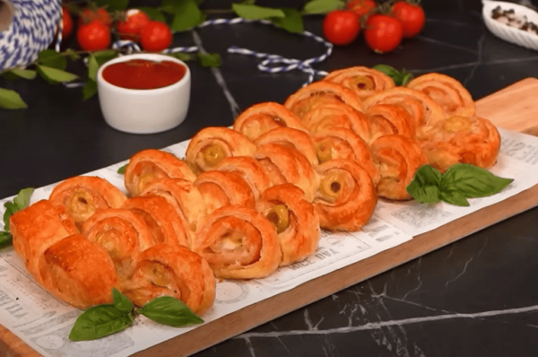 Pokud hledáte rychlý a chutný recept na slané pohoštění, dvojité šneky z listového těsta plněné šunkou, olivami a sýrem jsou skvělou volbou. Tento jednoduchý recept zvládnete připravit během chvíle, a díky kombinaci šunky, oliv a rozpuštěného sýra vznikne lahodná chuťová harmonie, která potěší každého. Ideální na večírky, rodinné oslavy nebo jen tak k odpolednímu občerstvení. Křupavé těsto a bohatá náplň dělají z těchto šneků neodolatelnou pochoutku, kterou si zamilují malí i velcí!