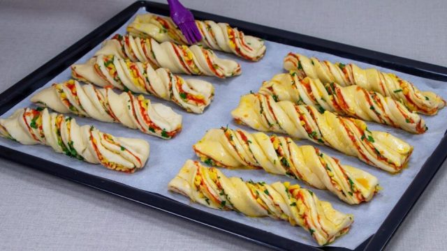Výborný recept na vrtule s kuřecím masem a sýrem z listového těsta: