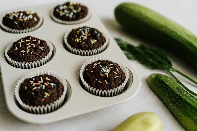 Pokud hledáte dezert, který je zároveň zdravější, chutný a snadný na přípravu, pak jsou tyto čokoládové muffiny s cuketou jasnou volbou. Cuketa v těstě se zcela ztratí, ale dodá mu dokonalou vláčnost. Kombinace kakaa a kvalitní hořké čokolády zajistí intenzivní chuť, zatímco řecký jogurt a med dodají jemnou sladkost a krémovost.