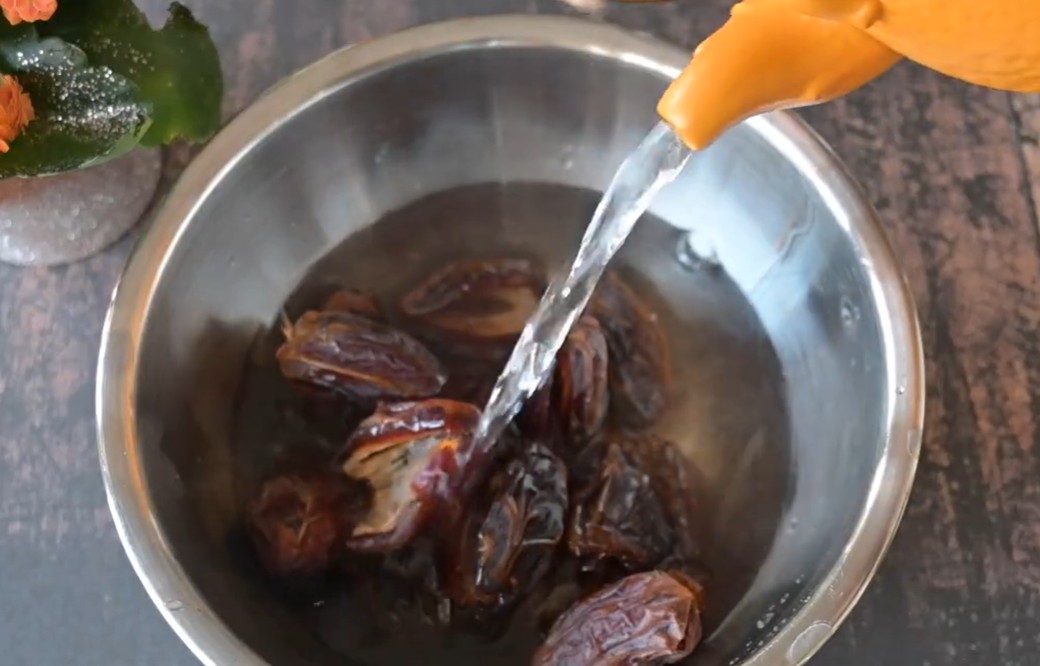 1) Datle oddělíme od pecek, a na 5 minut umístíme do vody.