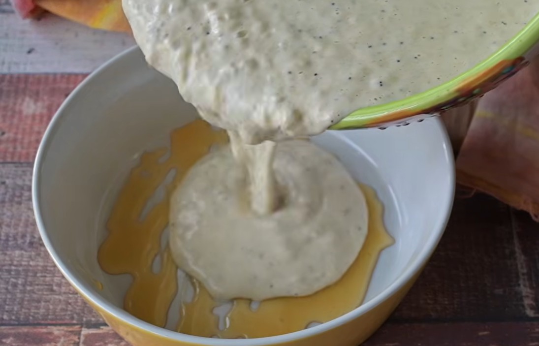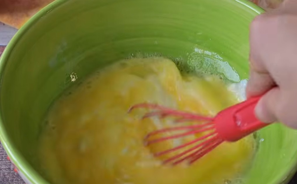 1) Vyšleháme si vejce se zakysanou smetanou.
