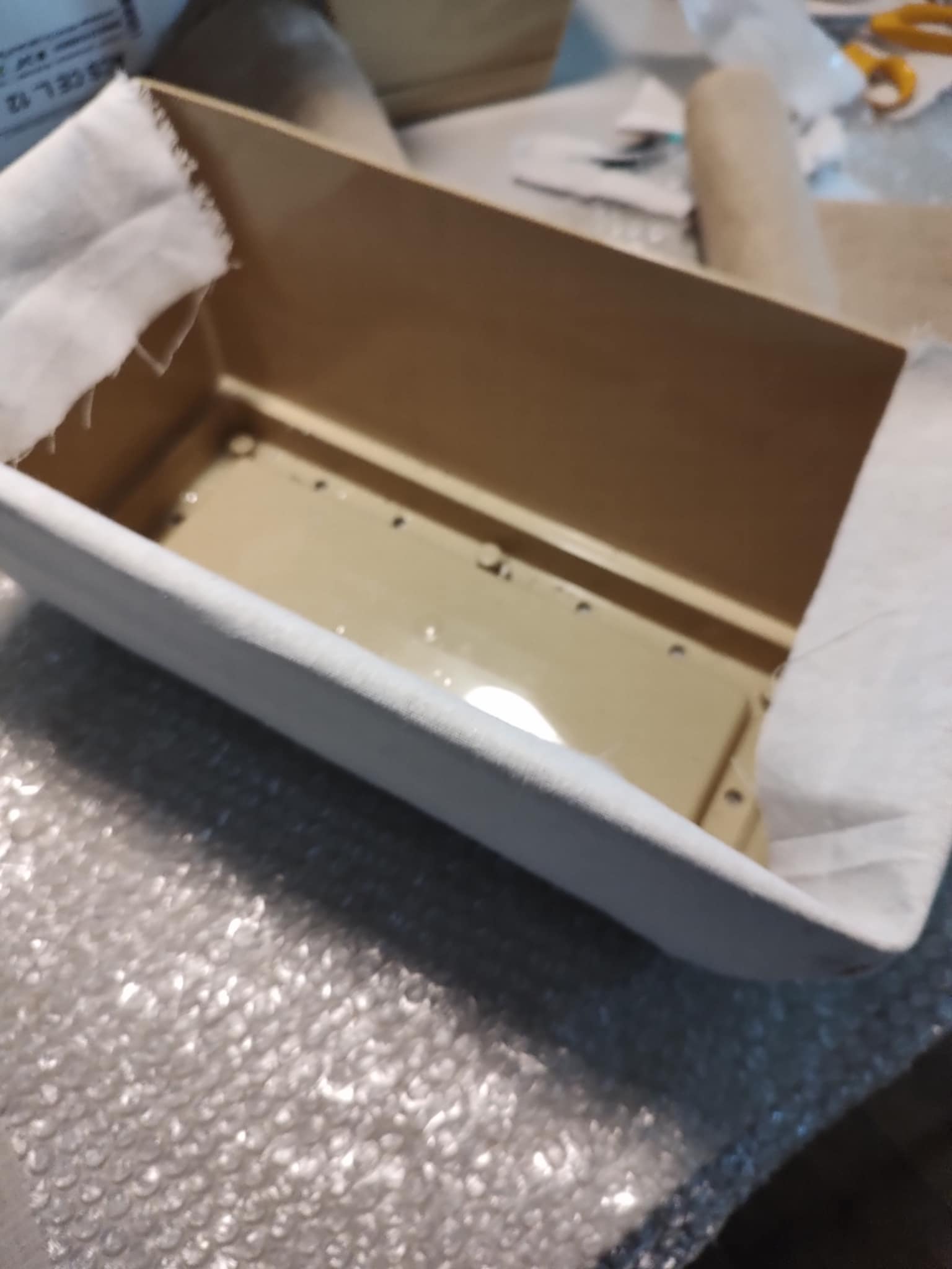 Barevný plastový truhlík nejprve zakryjte látkou.