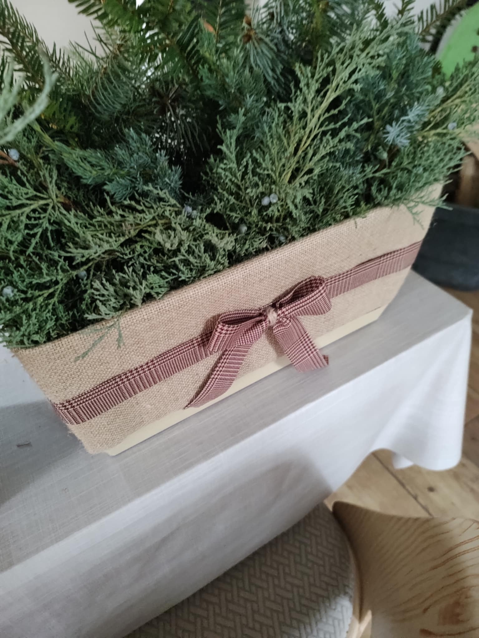 Kolem celého truhlíku omotejte stuhu a na přední straně vytvořte mašli.