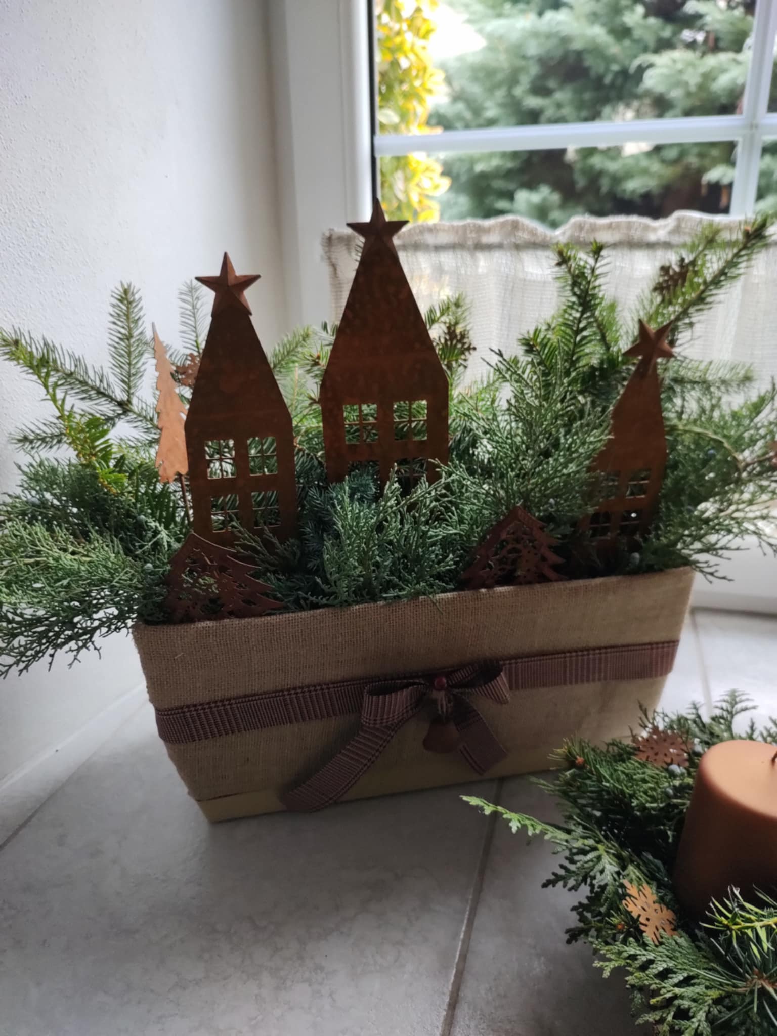 - Udržujte barevnou paletu – přírodní béžová, rezavé kovové tóny a sytě zelené jehličí jsou ideální kombinací.